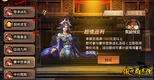 除上述两种新玩法之外,《傲世群英传》手游近日还将开启登录送礼活动。单笔充满1980或3280元宝及以上,便有超级返利回馈,各种等价元宝、海量资源奖励等你拿!以上玩法更新和具体活动时间,将通过游戏内公告昭告天下,还请各路英雄多多关注,不要错过哦。