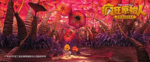 影片最初,谨慎保守的瓜哥带领着家人躲藏在山洞中,周围都是贫瘠的砂岩地。到处可见被风沙吹散的碎石,食物稀少,一枚鸟蛋就是一家人唯一的食物。山洞崩塌后,随着盖的出现,在寻找希望的路上,咕噜家族见到了各种从未见过的画面,长满蒲公英的红色山坡、布满苔藓的大树、被植物包围的热带雨林...各种绚丽的场景出现在荧幕上,这些场景充满了未知的神秘感,不断的吸引着观众目光。