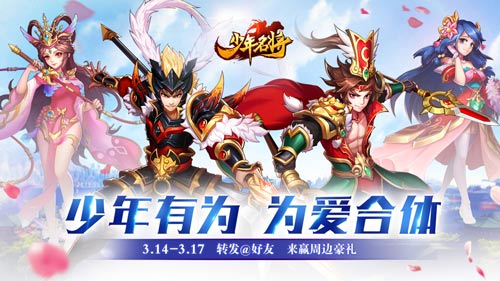 白色情人节怎么过?《少年名将》陪您今日一起嗨!在这个出双入对的节日里,《少年名将》手游特意在微博上举行“少年有为,为爱合体”的微博抽奖活动,在微博搜索“少年名将手游”,转发活动微博并@你的一位好友,分享你想对ta说的话,即有机会成为今日的幸运少年,获得定制的周边豪礼哟。