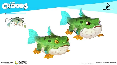 其实早在原作电影《疯狂原始人》制作之初,梦工场就设计了许多不同种类、栖息地的原始动物。这次中方研发团队在和IP方梦工场动画影片公司的交流合作中,不仅把为电影设计,但遗憾没有呈现给观众们的宠物们加入游戏。也激荡出新的灵感火花,创造了更多新的生物组合,例如号称黑夜杀手的“黑蝠豹”、有着最强辅助之称的“蛙眼豚”等。