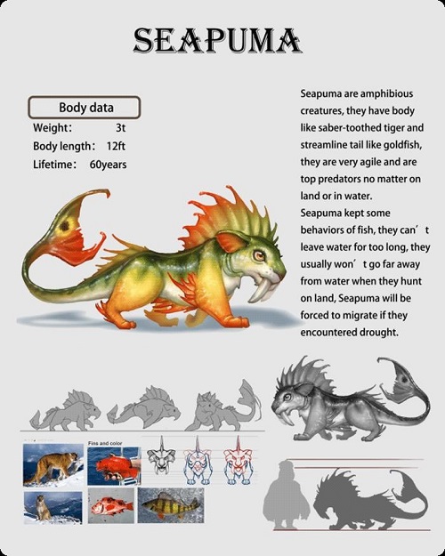 既然是从真实生物界获取的灵感,那游戏中宠物们的外形设置上当然也可以看出它们的特征。例如拥有漂亮鱼尾巴和豹子身躯的“鱼尾豹”,在战斗属性上也有明显的两栖特性。鱼尾豹主要是发射水柱形的精神攻击技能“豹之魂”来攻击全体敌人。在发出物理攻击技能时,也能甩动尾巴进行贴身近战打击。