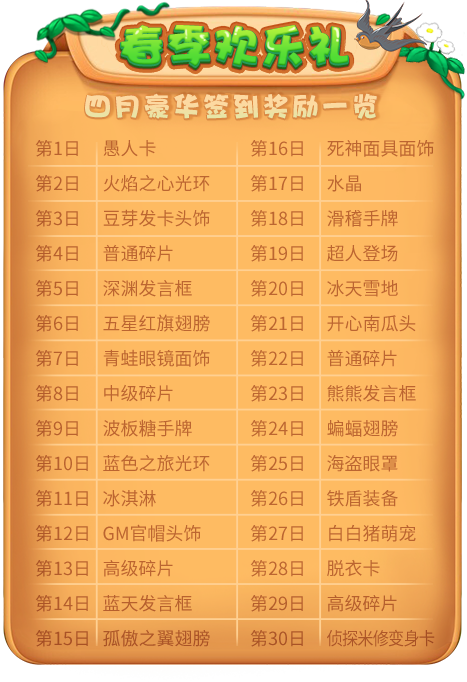 2019年4月豪华签到奖励一览