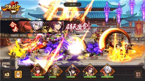 神将斗九州,合击战三国。《少年名将》是一款全新三国RPG炫技卡牌手游,精妙绝伦的人物立绘,炫酷霸气的合击特技,全新的三国之旅,由您体验这非凡战场。一骑当千、军营养成、群雄争霸、过关斩将等全新玩法,带您领略指尖上的真实三国。少年郎,这纷纷乱世,可敢随我战一场?