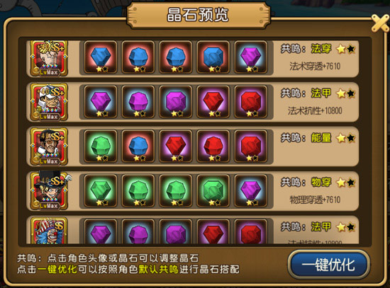 因火队可以靠火标记提供的纯粹伤害提供输出,所以晶石的佩戴也相对比较灵活,在面对一些高输出的阵容时火系的英雄可以佩戴法甲和物甲晶石,若输出不足的情况下火系英雄也可以改为配搭物穿或法穿晶石。