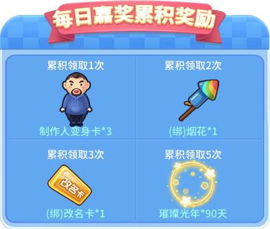 根据您累积领取“每日嘉奖”的次数,领取相应奖励: