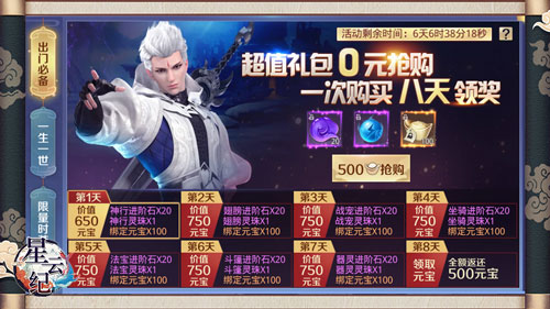 4)所有档次在购买后,在活动第8天可领取购买所花费的元宝。
