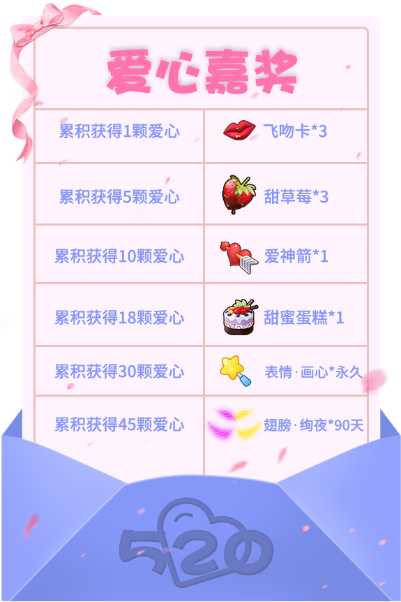 爱心嘉奖:根据您获得的“爱心”总数量,可以按以下规则领取额外奖励: