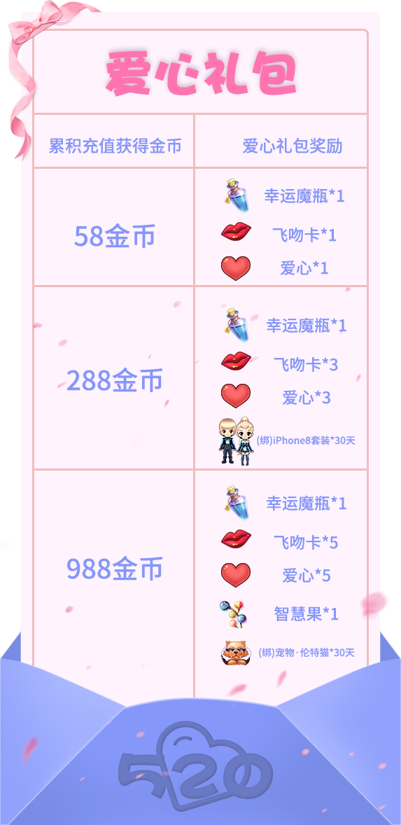 2. 爱心礼包奖励每日重置,已获得的“爱心”不会清零;