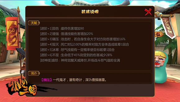 有些武将的天赋既不是攻击,也不算防御,而是操控起了怒气。大家都知道《推倒三国》里怒气是很重要的,例如,当孙权的+5天赋“怒气技能使吴国武将增加1点怒气”点亮,而你恰好整队都是吴国,怎一个爽字了得?只要想办法调整好武将的出手顺序,操控好怒气的积累,就能在战场上所向披靡!