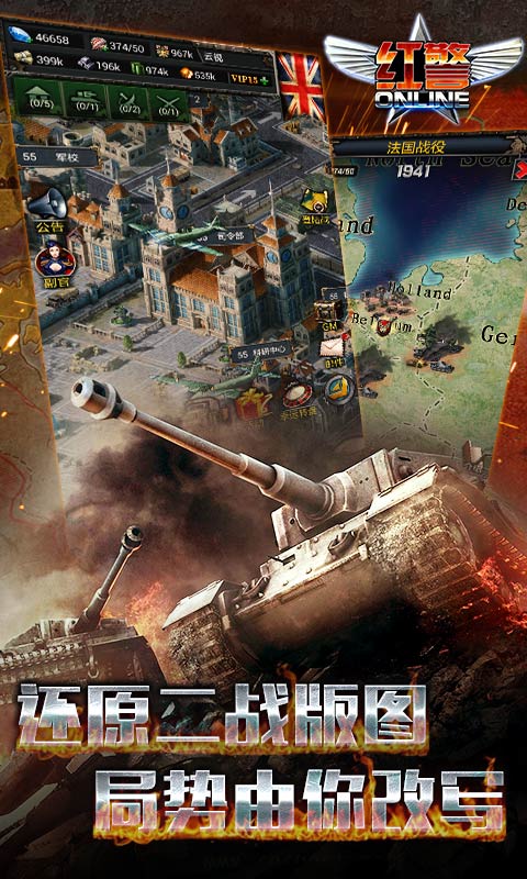 号外!号外!二战版红警手机网游巨作《红警online》即将公测!与以往架空历史的红警故事不同,《红警online》以真实的二战历史为背景,玩家作为一名新晋指挥官选择一个国家,平息这场浩劫全球的战争。游戏真实还原了二战着名战役、战火纷飞的军事战场、逼真的打击感、制作精良的坦克造型,将给玩家带来完全不同的军事游戏体验,抒写每个人的二战篇章。