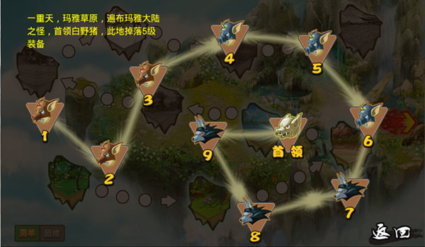 猪怪(加粗):一重天,玛雅草原,遍布各种猪怪,以白猪为首的巨猪怪带领三五只猪仔来滋事挑衅