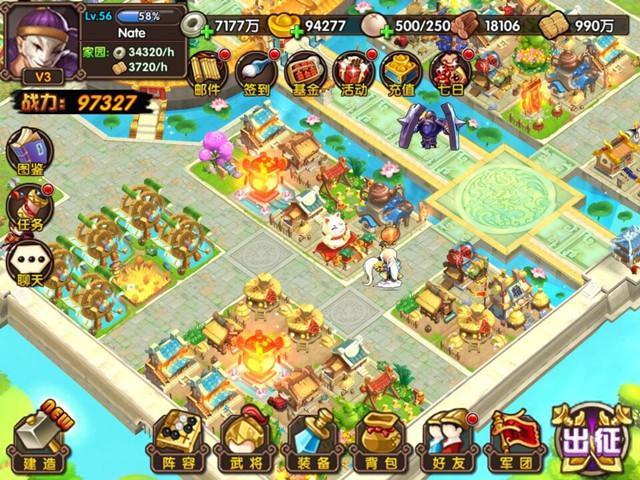 《三国带你飞》首创风水玩法,让玩家在享受策略对战的同时也能体验模拟经营玩法。玩家所在的主城有分为内城和外城,中间由河流和围墙隔开,而玩家可以在外城的土地上建造喜欢的建筑,在这里我们为玩家提供了普通建筑和风水建筑,其中风水建筑需要周围造好相应的普通建筑才会被激活,普通建筑会按时产出银币和粮草,而风水建筑一但被激活会在提供产量的同时还有可能增加您部队的属性;有些建筑偶尔会有额外产出,需要玩家手动点击才能收获,VIP玩家是可以开启自动收获的哦!