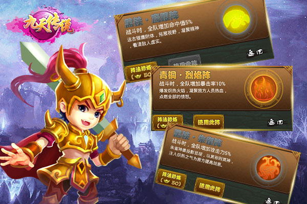 阵法>迷踪阵,鹰眼阵,朱雀阵, 玄武阵,神农阵;烈焰阵等阵法修炼,多种阵法任你选