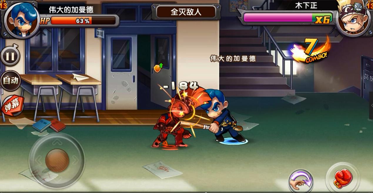 《热血高校》是由触控科技代理发行的2D横版格斗类手游,获任天堂红白机着名游戏《热血高校》官方正版授权,热血系列FC制作人亲自担任监制,秉承原作风格与理念,融入更多新鲜玩法,打造移动游戏精品。游戏以热血、搞笑的高校故事为背景,人物各具特色,玩家可携伙伴共同作战、闯荡精彩副本、挑战天王BOSS、与校花亲密互动,还能够获得如棍棒、轮胎、板砖甚至汉堡包等特色道具,体验FC热血系列中经典的机关陷阱玩法,此外,时装、坐骑、手办收集、守护教学楼、竞技场PK、社团公会等玩法更加丰富玩家的高校生活。青春年少,时不我待,你,就是高校中的最强者!不要让燃烧的热血冷下来!