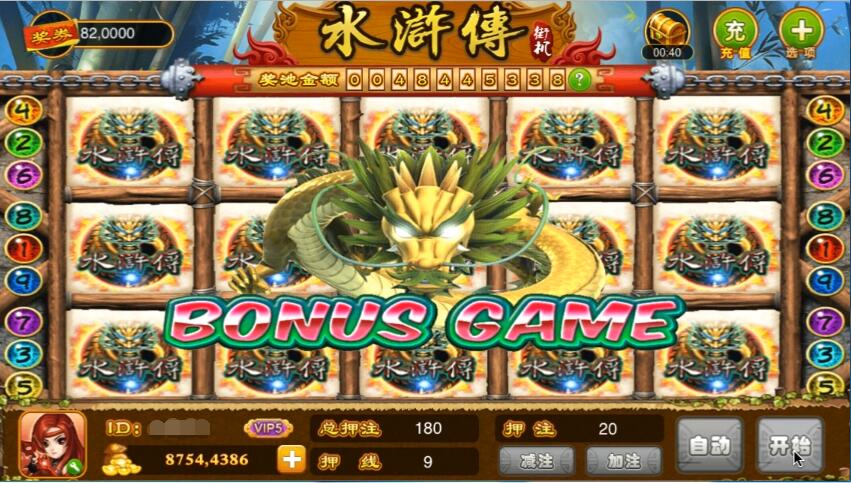 首先大家都知道全盘龙是街机水浒传游戏中倍数最高的奖励,同时也是概率非常低的;概率低但是并不是没有可能,龙作为水浒传游戏中的万能图案,这样的概率还是完全存在的,今天小编玩街机水浒传,就中过一个全盘龙奖励,那金币只能说哗哗的,流不停啊。子水浒传全屏奖励中全盘奖励由大到小依次为:全盘龙5000倍、忠义堂2500倍、替天行道1000倍、宋江500倍、林冲400倍、鲁智深250倍、金刀150倍、银枪100倍、铁斧50倍。
