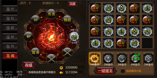 感到攻击不够给力?防御简直战五渣?没关系,得龙魂者得天下,玩家消耗非绑定金币可以屠龙获取龙魂,装备龙魂可以提升基础属性,而且龙魂可以通过吞噬其他龙魂进行升级,属性爆升之后,还怕玩的不爽吗?